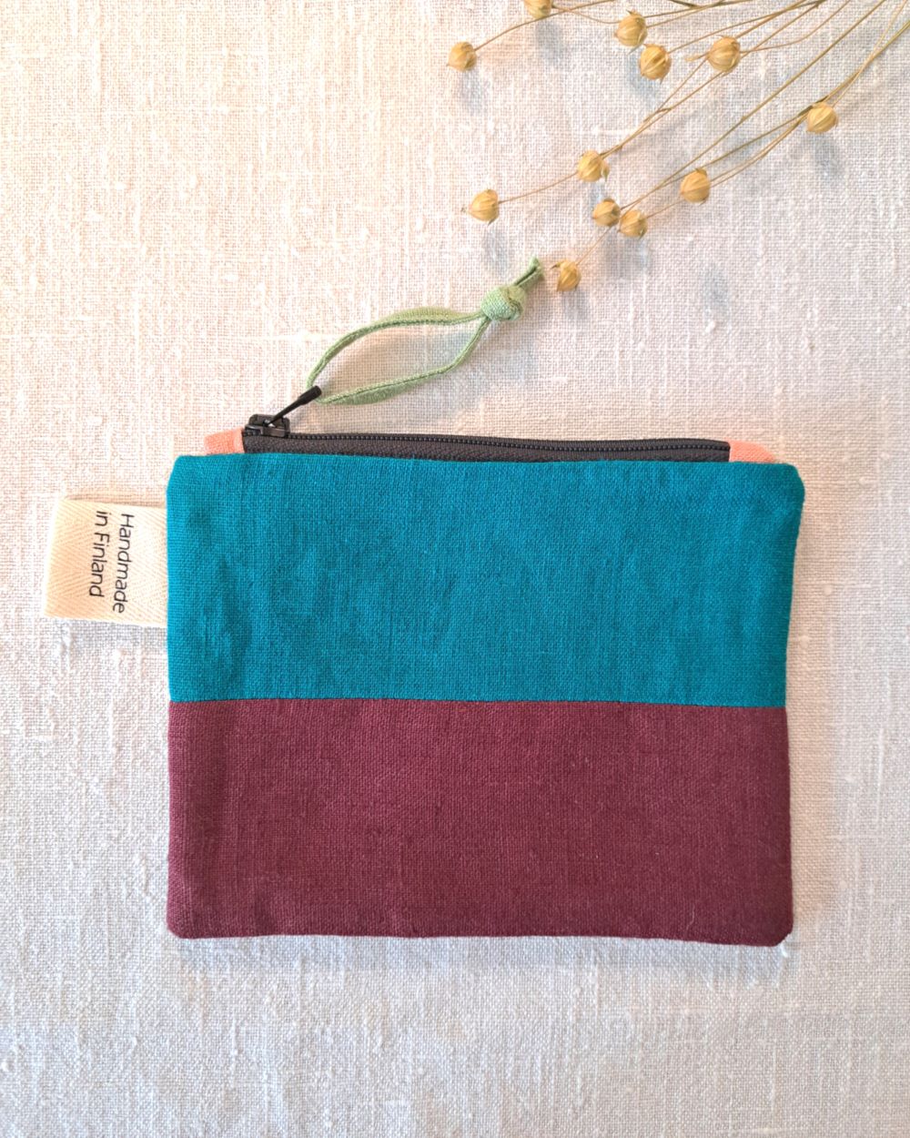 Vetoketjupussukka on käytännöllinen valinta avaimille, kosmetiikalle tai muille pikkutavaroille, ja pellavan tuntu hyppysissä tuo arkeen ripauksen luonnonläheisyyttä.