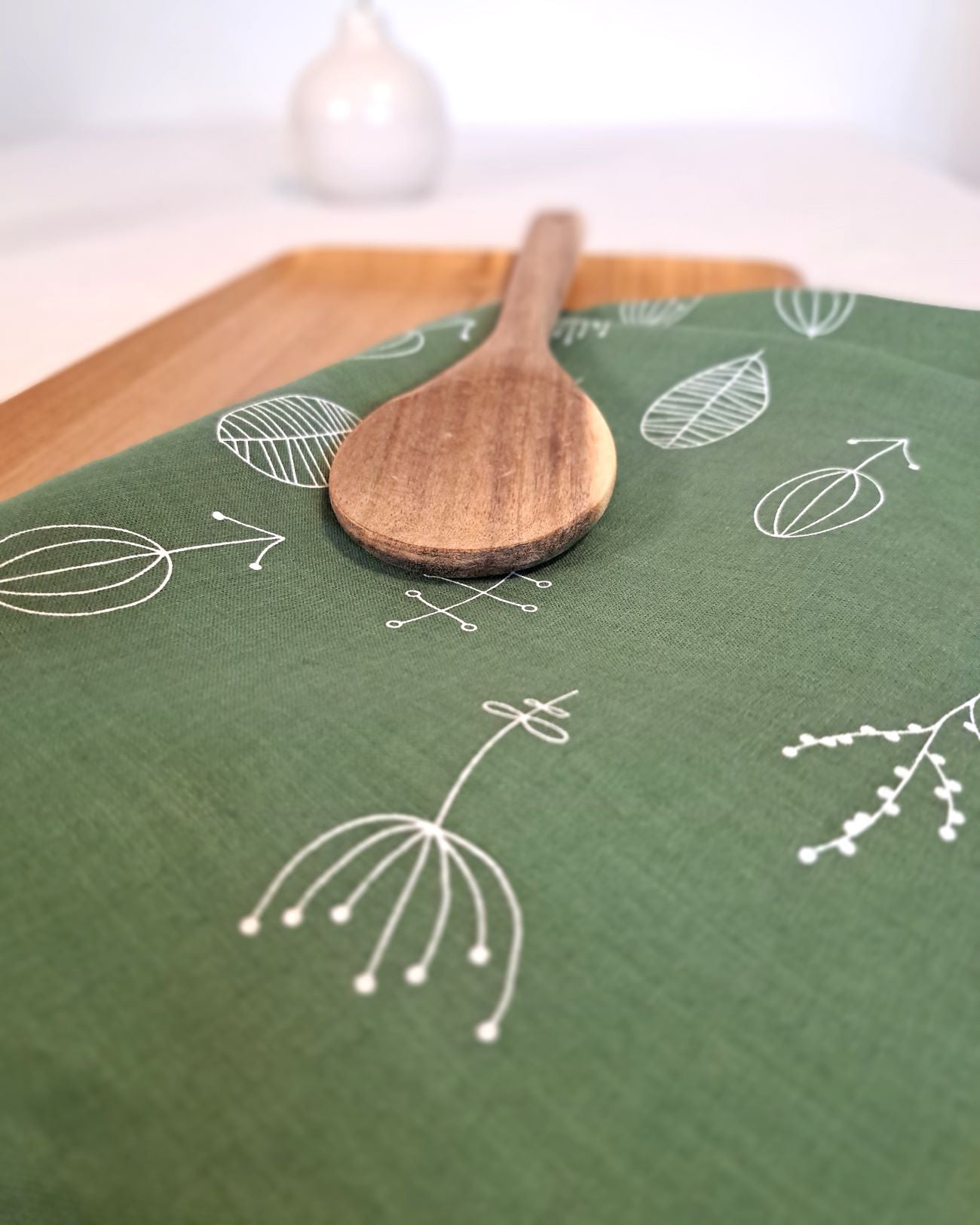 Keittiöpyyhe pellavaa, koivunvihreä Flora
