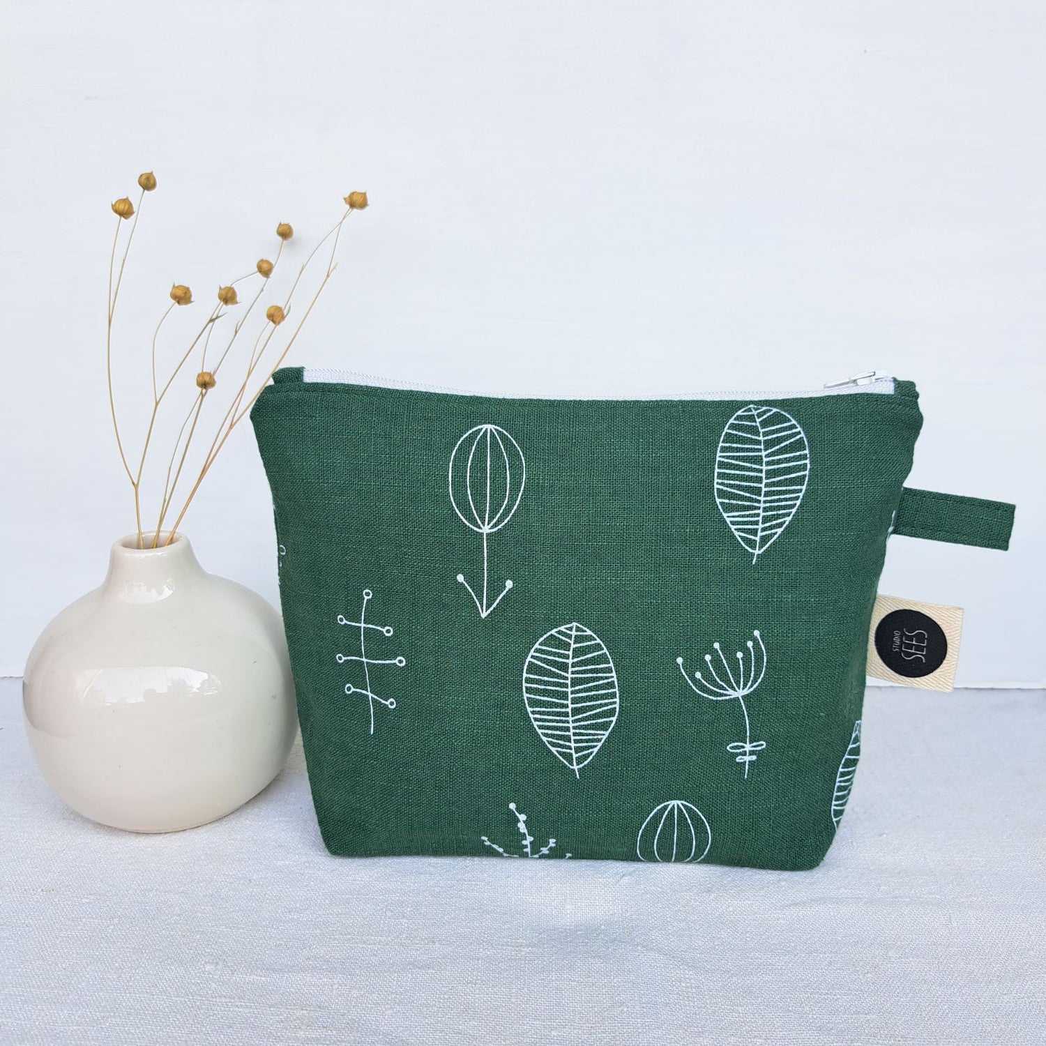 Vetoketjupussukka on käytännöllinen valinta avaimille, kosmetiikalle tai muille pikkutavaroille, ja pellavan tuntu hyppysissä tuo arkeen ripauksen luonnonläheisyyttä.