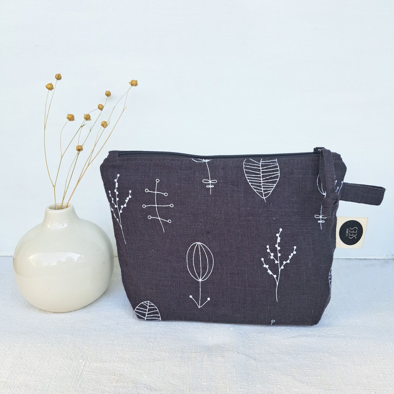Vetoketjupussukka on käytännöllinen valinta avaimille, kosmetiikalle tai muille pikkutavaroille, ja pellavan tuntu hyppysissä tuo arkeen ripauksen luonnonläheisyyttä.